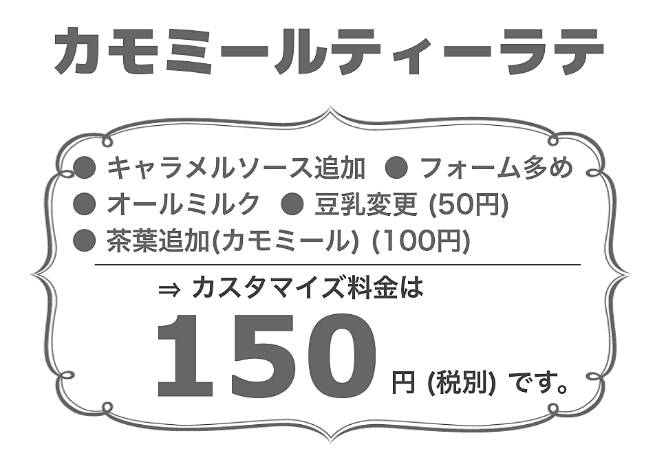 キャラメルソースを追加しフォームを増やすことで、風味の強いカモミールにも負けないまろやかな甘さにカスタマイズすることができます。