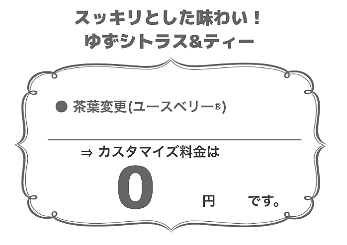元からドリンクに入っている茶葉を他の茶葉に変更する場合は、無料でカスタマイズすることができます。