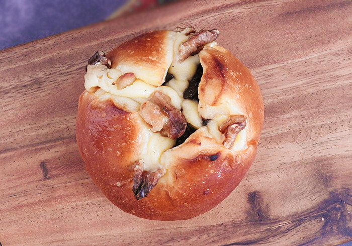 表面にちょこんとのっているくるみ。焼き色がついていて香りが漂ってきます。口に運んでみると、くるみの香ばしさと少々の苦みがたまらない!私は今まで数々のくるみパンを食べてきましたが、こんなにもくるみを美味しいと感じるパンは初めてです。