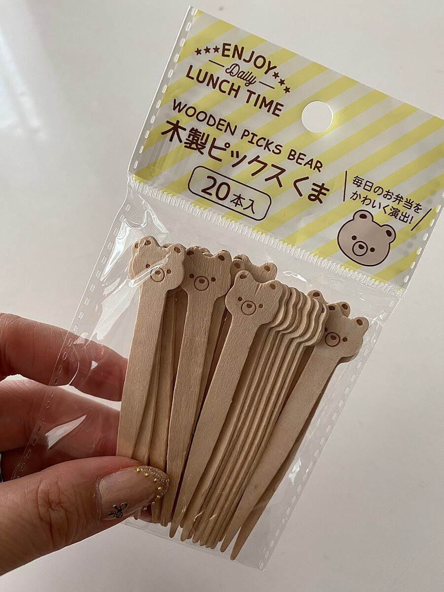 木製ピックはどれも可愛いですよね。こちらは、20本入りで100円(税別)。