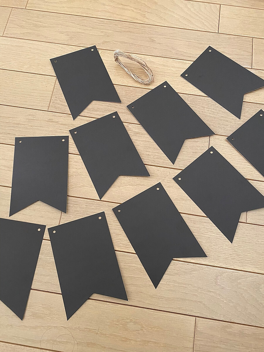 最初、この商品を見たときは、普通の黒いガーランドなんだー!くらいにしか思いませんでした。手に取りよくよく見ると、自分で文字や絵が描けるタイプ。