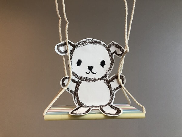 ブランコに乗せたい人や動物などを画用紙に描いて切り取り、ブランコに乗せてみてください。