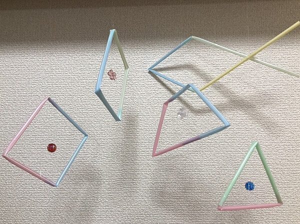 ・大きい子どもは、自分たちで思い思いの形を作ってみましょう。 ・小さい子どもは、目で見て楽しめる高さに飾るといいでしょう。 ・落下などによる怪我や、ビーズの誤飲がないよう、気を付けましょう。