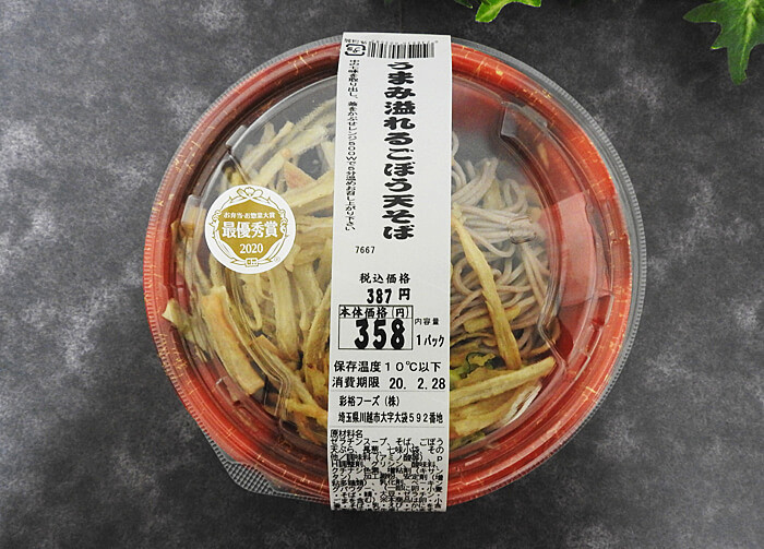 マミーマート「うまみ溢れるごぼう天そば」は、2020年の「お弁当・お惣菜大賞」麺部門でなんと最優秀賞を受賞しています。成城石井のおしゃれな麺惣菜よりも上の賞……!地味なごぼう天そばが最優秀賞なんて信じられない……とにわかには信じられませんでした。