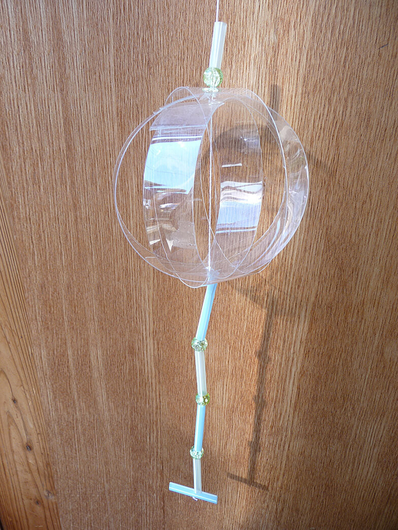 最後に、切ったストローの真ん中に糸をくくりつければ、できあがり。![]()