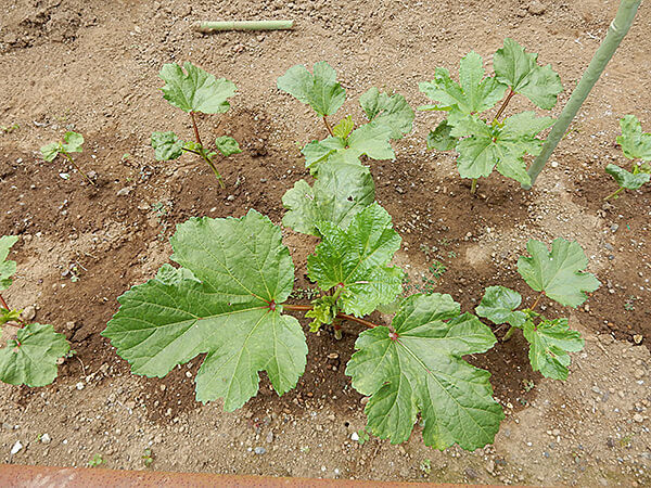 花が咲くオクラ。葉をたくさんつけて、大きな花を咲かせるオクラは、成長を面白く感じられます。 (1)のきゅうりと同じ手順で植えます。