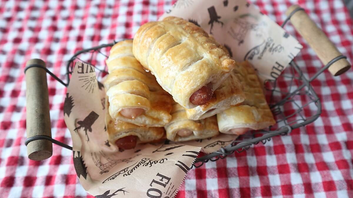 ソーセージを包んでソーセージパイにするのもおすすめ。子どもが大好きな味で、おやつや朝食にもぴったいです。