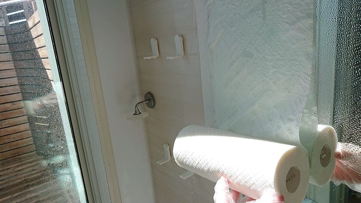 ロールタイプのキッチンペーパーだと、鏡に貼り付けやすいですよ。