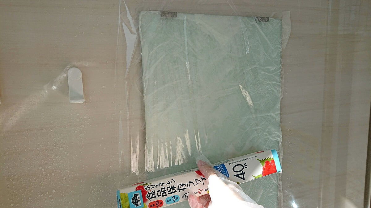 クエン酸を含んだキッチンペーパーをラップで覆います。