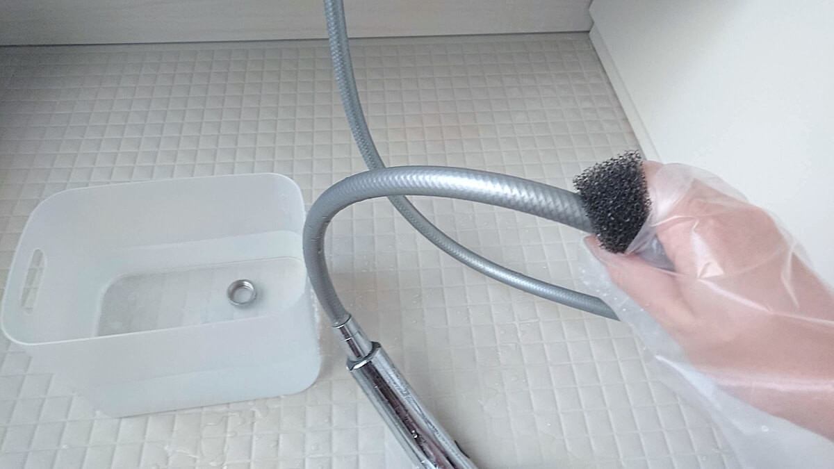 (2)シャワーヘッドをつけおきする