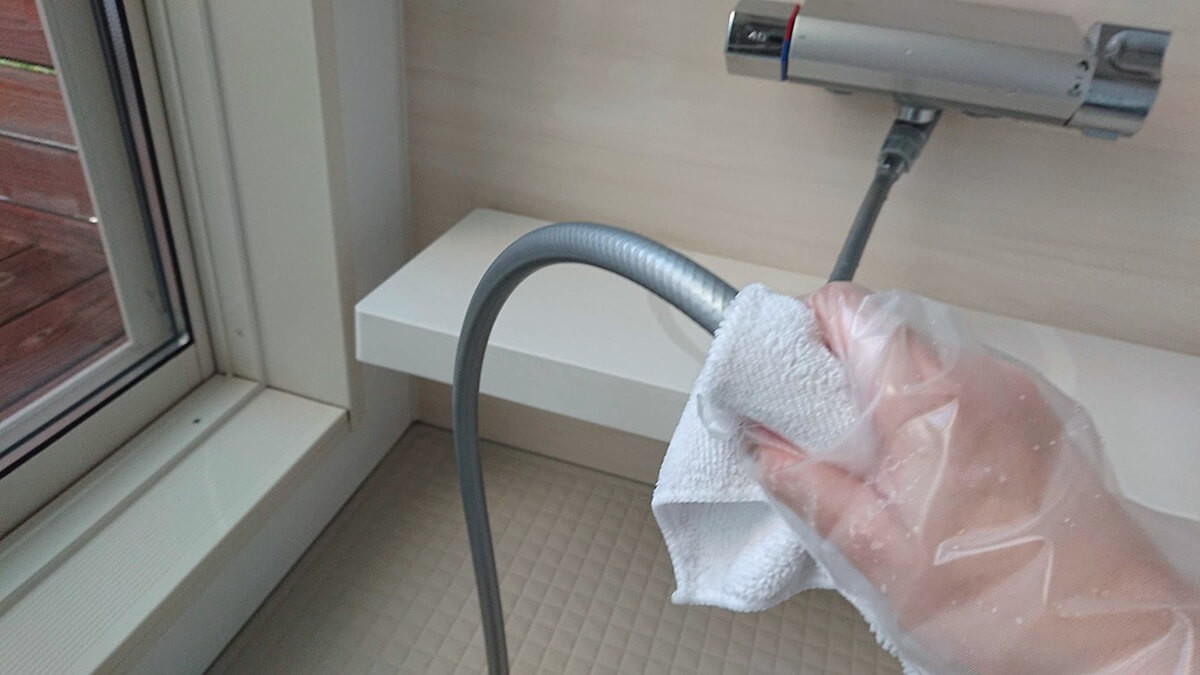 お風呂のシャワーヘッドやホースは、なかなか掃除が行き届きにくい場所。気がつくと水垢がついている場合があります。