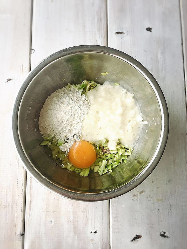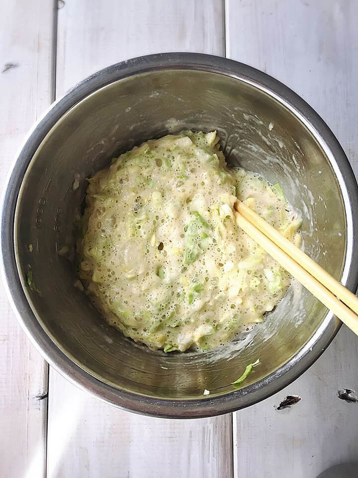 1、豚肉以外の「生地の材料」をすべて混ぜます。