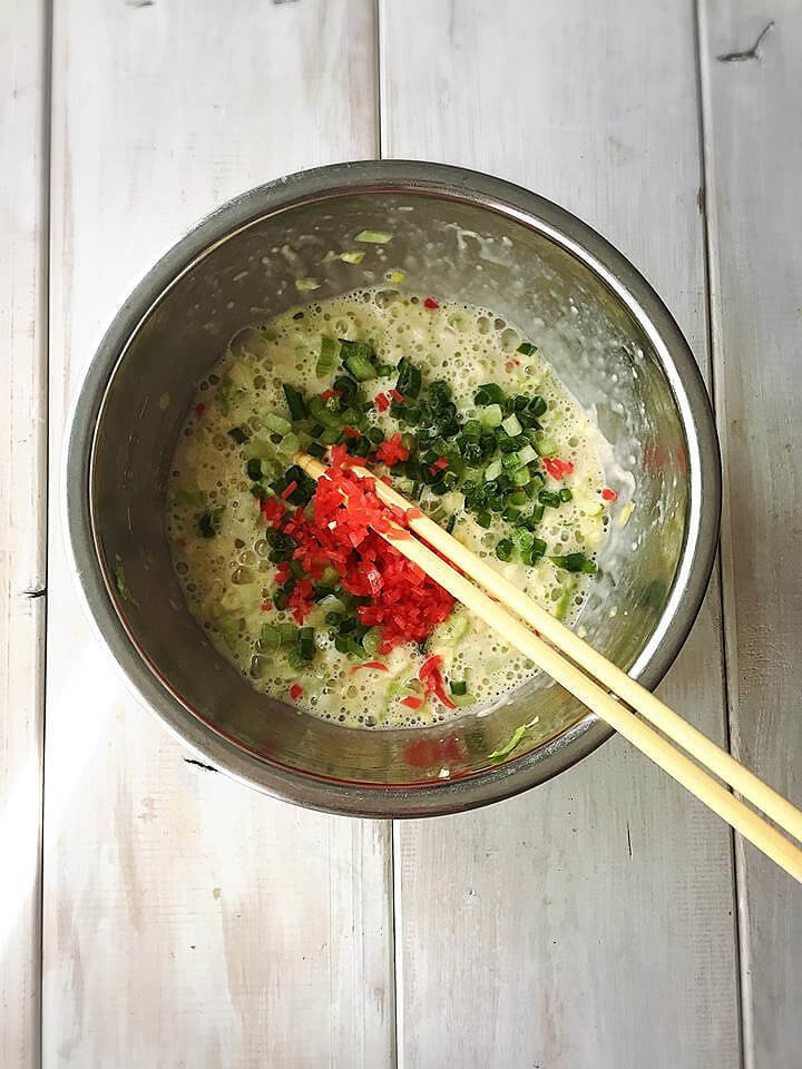 紅しょうがは生地に入れずに トッピングにしてもいい感じです。