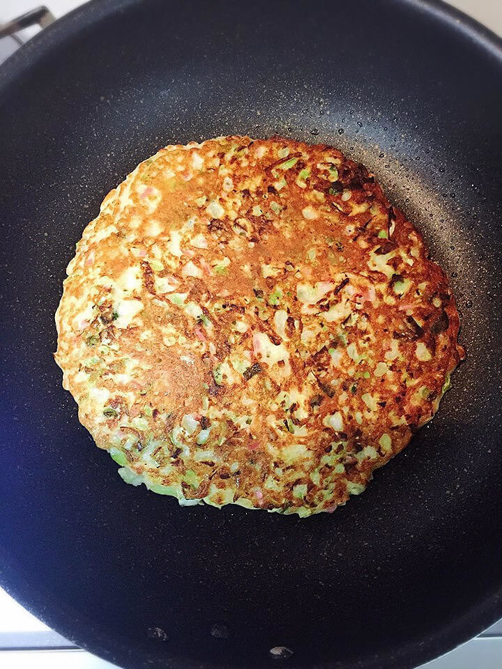 2分ほど焼き、こんがりと焼け目がついたらひっくり返す。