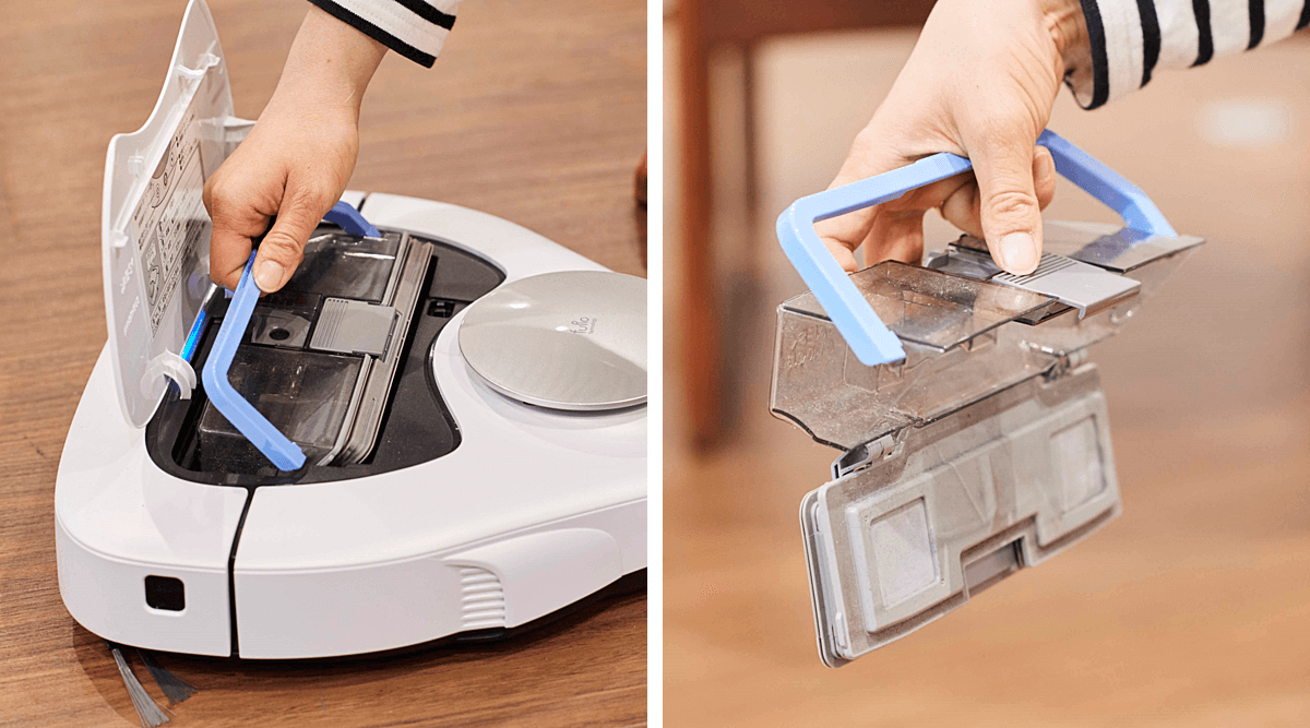 浦川さん:「ルーロ」のダストボックスは水洗い可能です。さらに、本体上部から片手で取り出してワンタッチでゴミを捨てられるのがポイント。