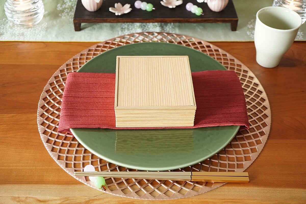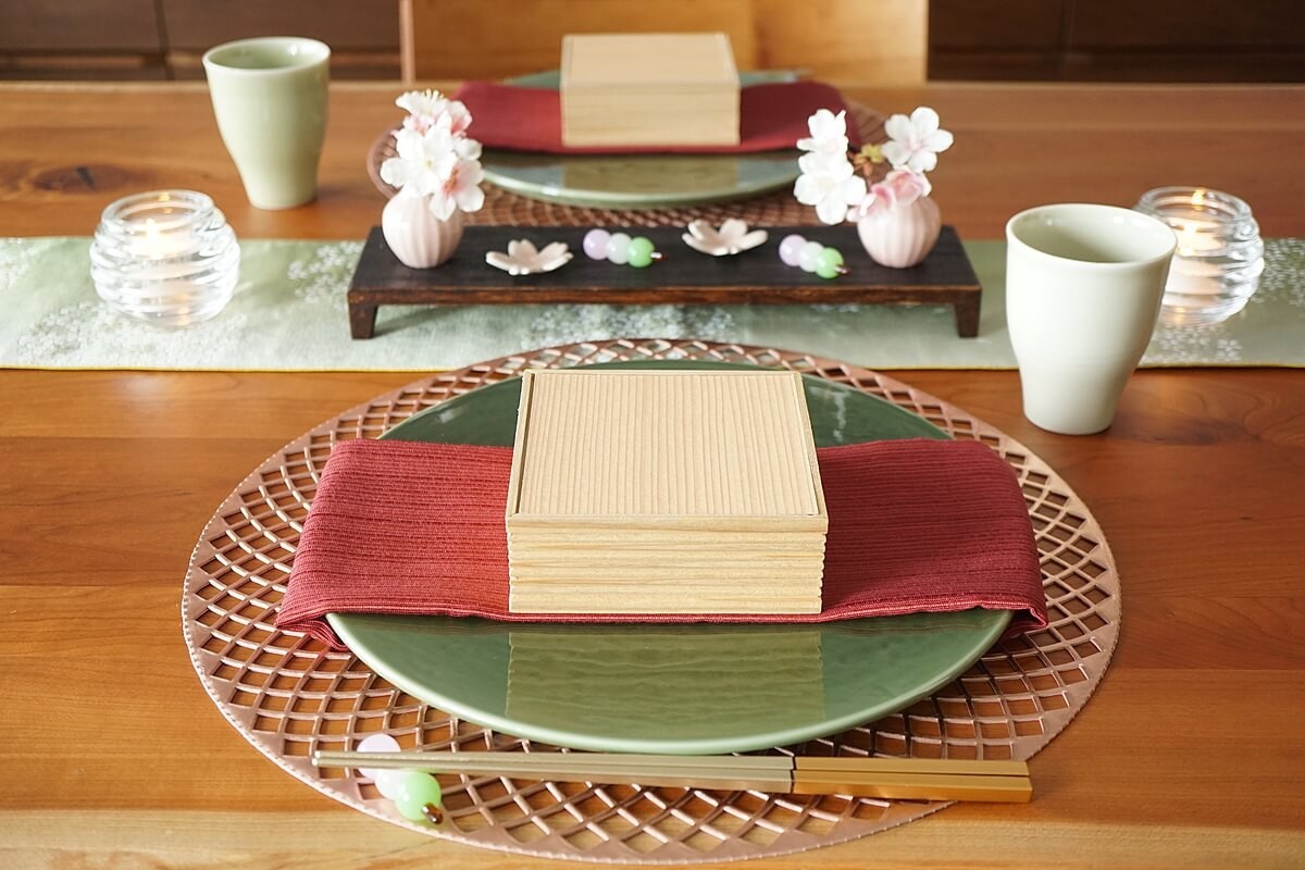 こちらのランチョンマットは和にも洋にも合うので、まずはおうちお花見をテーマにした和のテーブルに使用してみました。