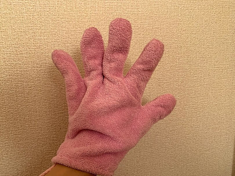 私は右利きなので、ドライヤーは右手に持つので手袋は左手につけます。 全体的にゆったりとした作りで、手袋の中で指が動かせます。なのでドライヤーを持ちやすいんです!