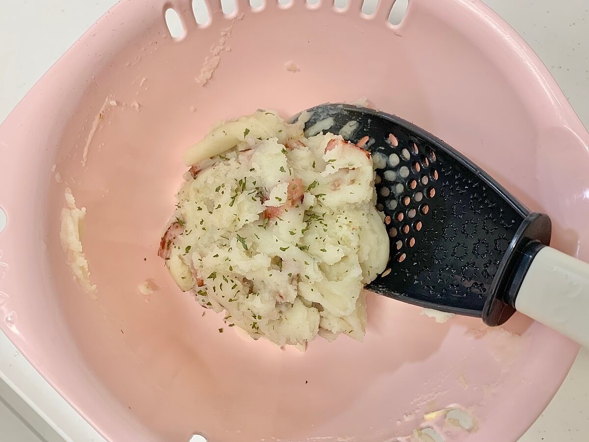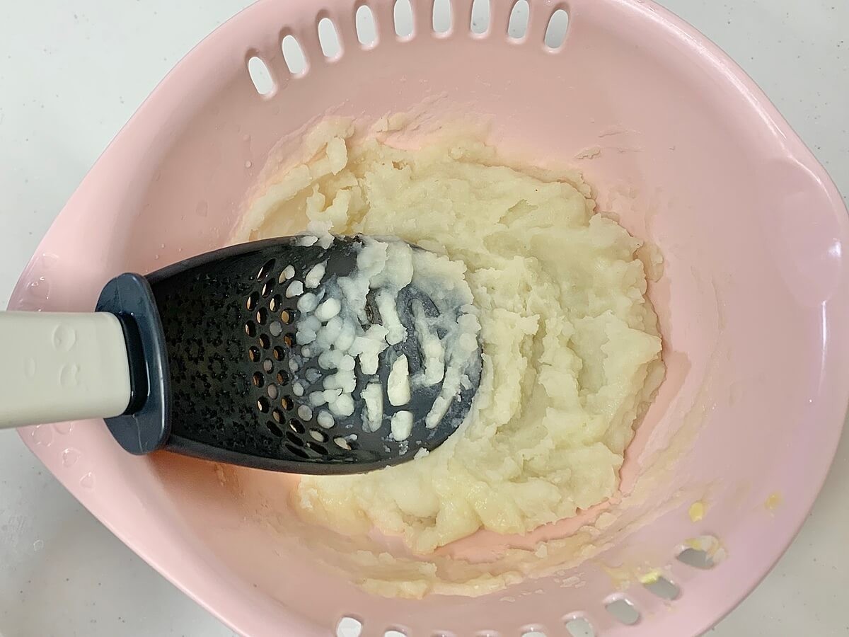 じゃがいもをつぶし、具材を入れて混ぜるだけ。調理器具はこれ1本でできあがります♪