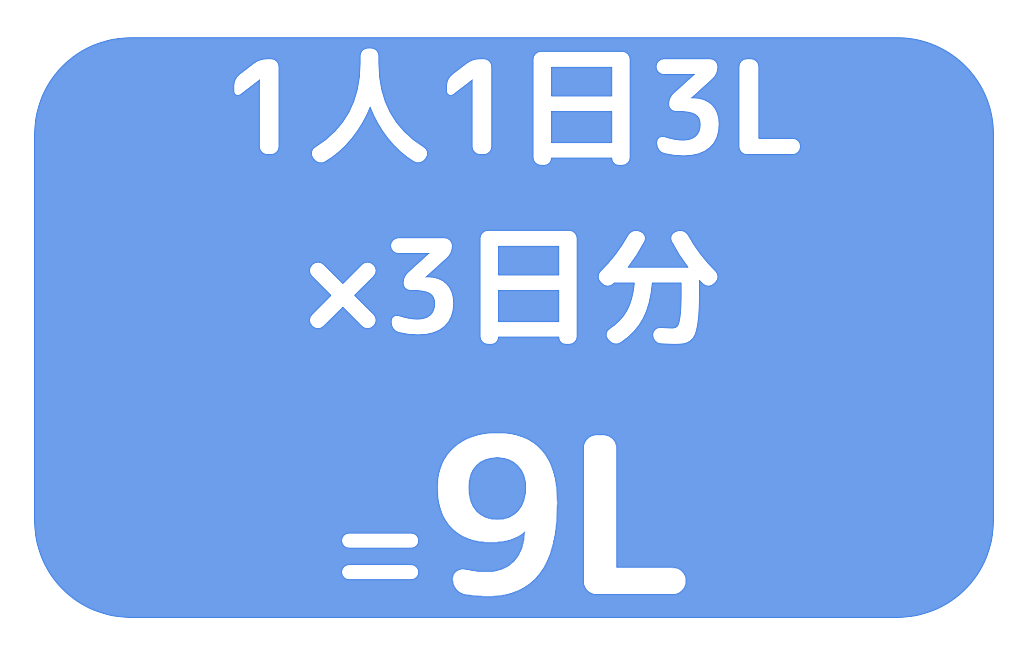 備蓄しておくべき飲料水は「1人1日3リットル×3日分=9リットル」