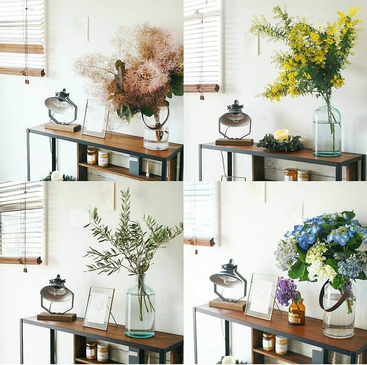 何を入れても、どこに置いても馴染んでくれるから3つのフラワーベースは基本出しっぱなし!