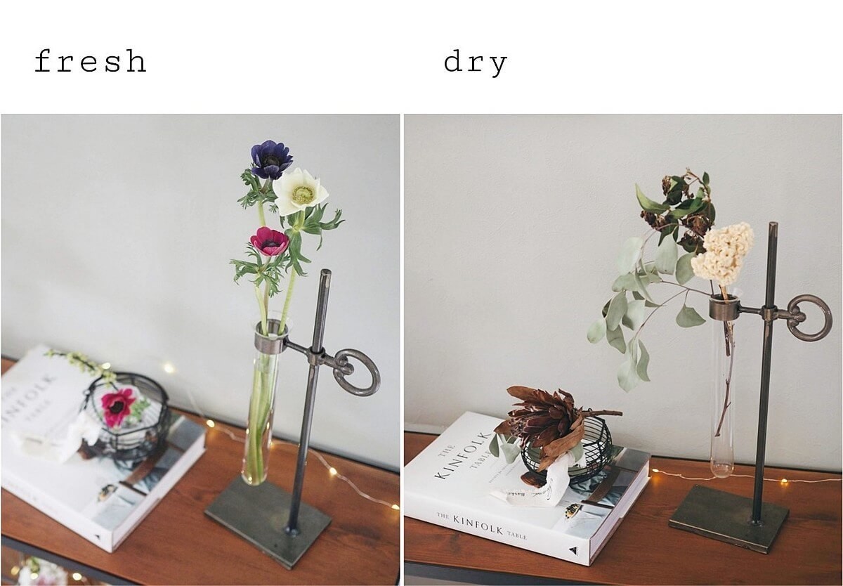 もちろん、生花だけでなく大ぶりの枝ものやドライフラワーとも相性抜群です。