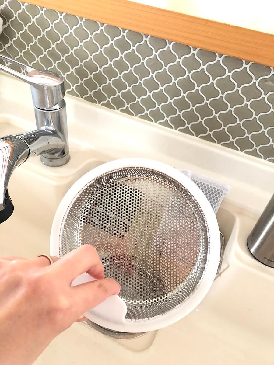 ちなみに、今まではキッチンに備え付けられていたプラスチック製のごみ受けをそのまま使用していました。
