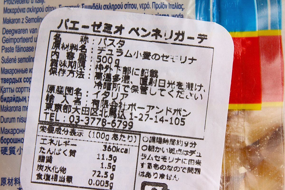 このペンネ、イタリア産でデュラム小麦粉のセモリナを使っています。