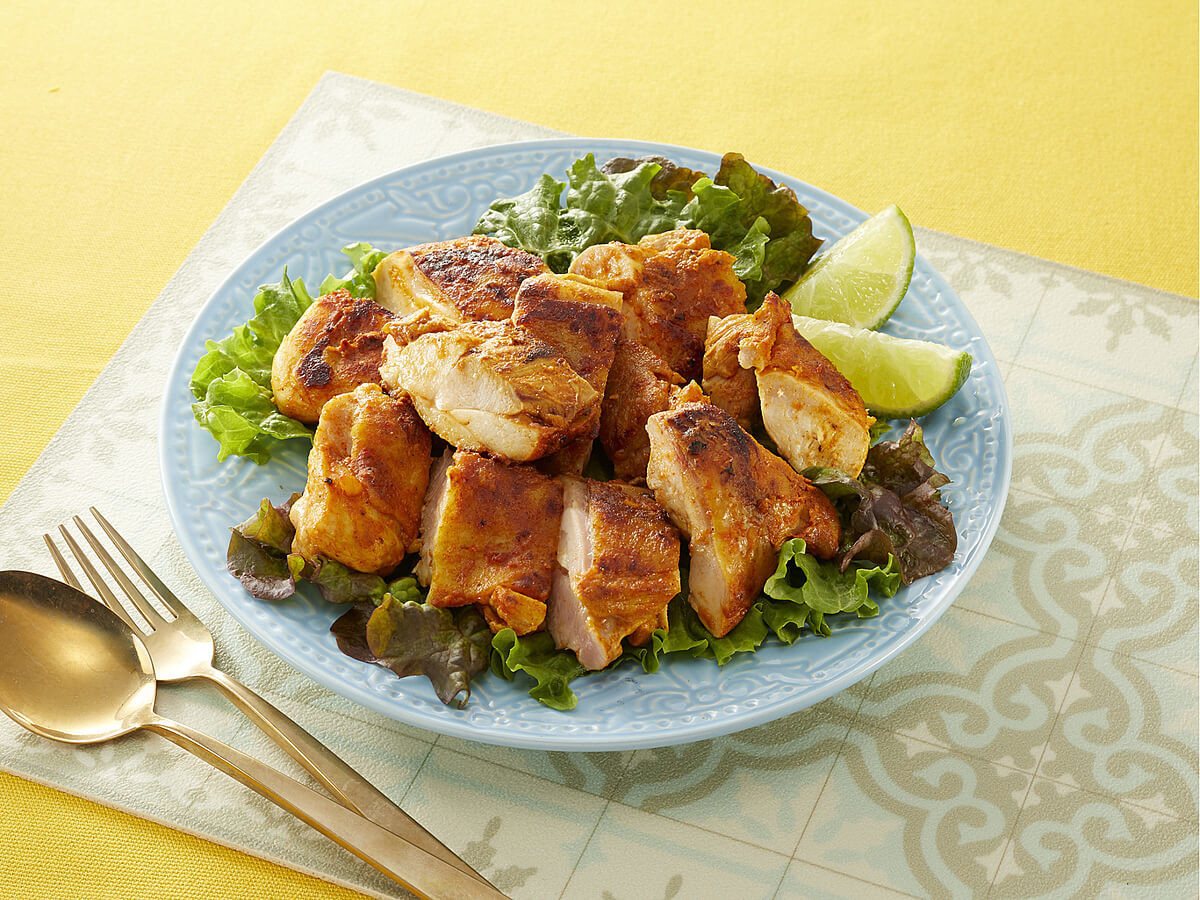 下味冷凍した「鶏肉のスパイスヨーグルト漬け」は、タンドリーチキンに活用することができます!
