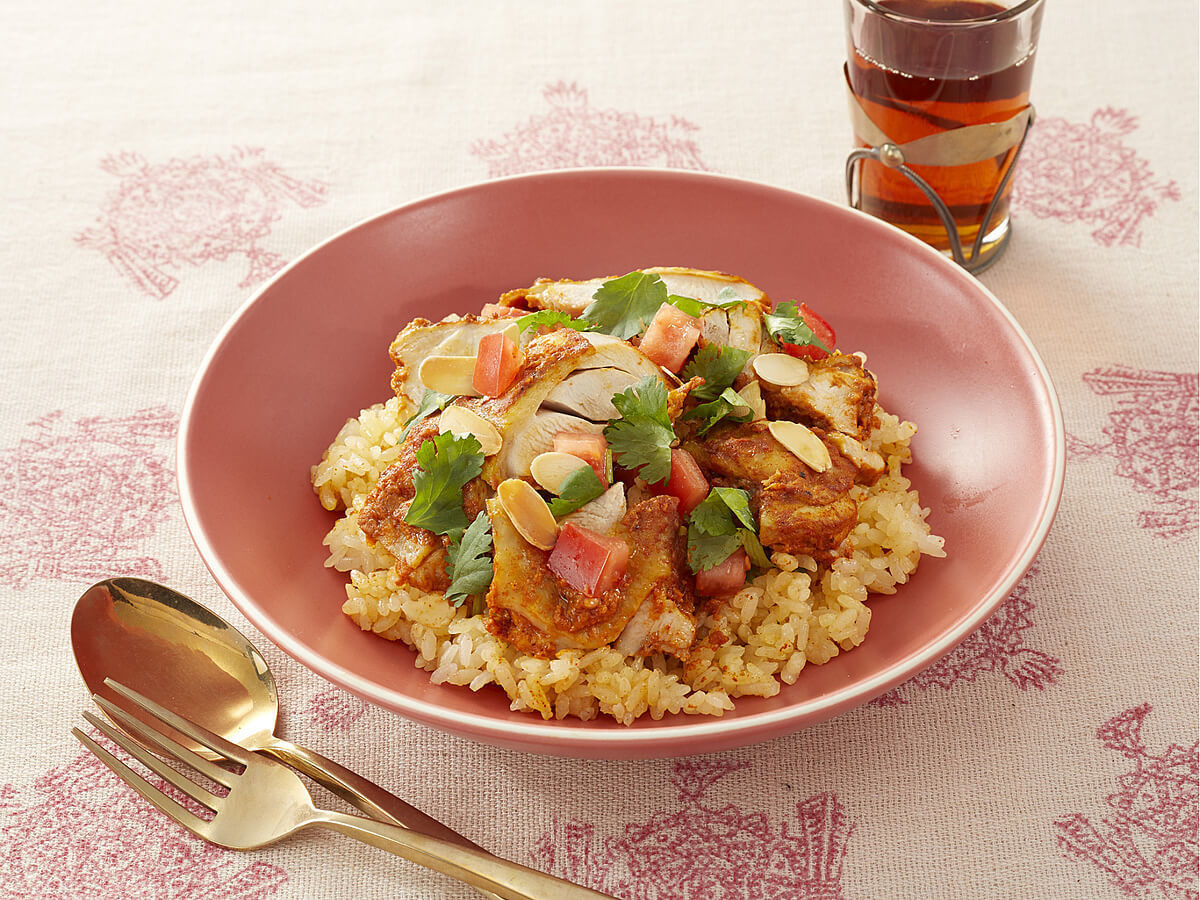 インドの米料理「ビリヤニ」のような、1皿で満足のいく、スパイシーな炊き込みごはん。サラダや温野菜を組み合わせるとよい献立になりますよ。