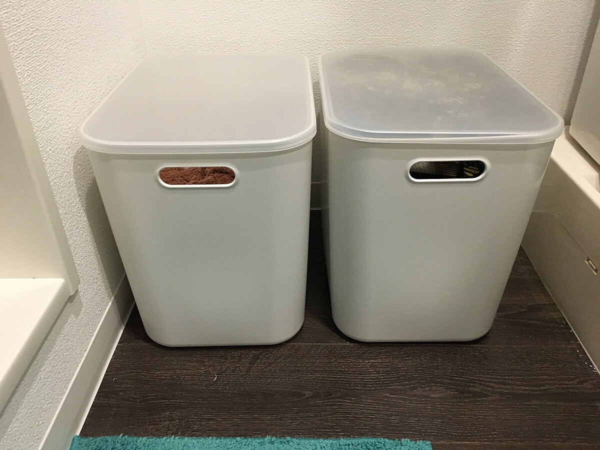 洗濯カゴ代わりには、「やわらかポリエチレンケース(大)」が2個あれば十分収納可能だそう。