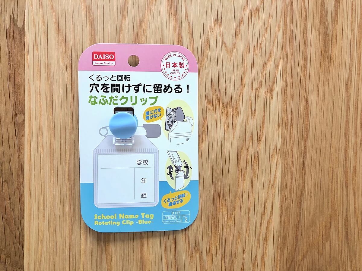 娘がまだ安全ピンの扱いが不慣れなのと、そもそも面倒なこともあり、ダイソー「なふだクリップ」を用意しました。