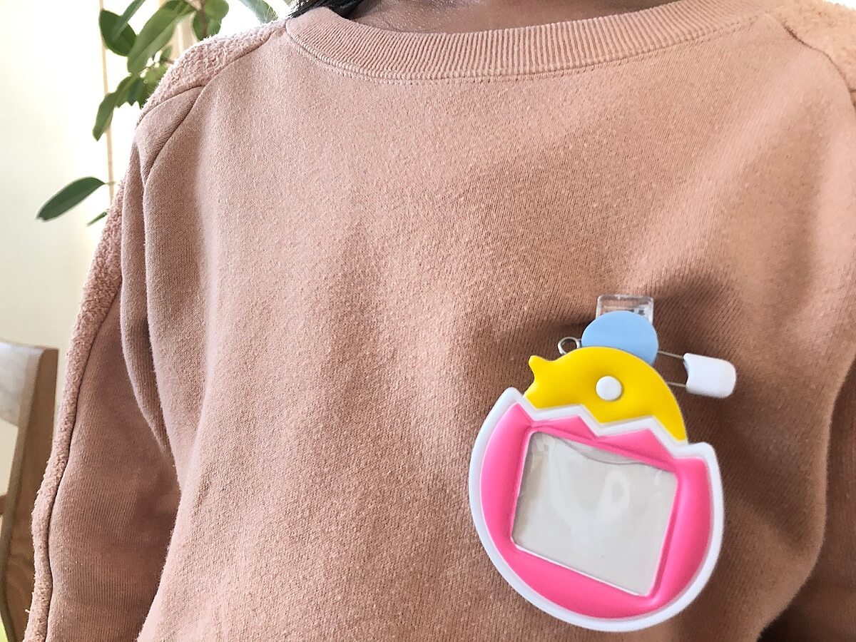 このクリップを使用すれば、服に穴を開けることなく(これもとっても重要!生地によっては安全ピンを通すとすぐに穴があいてしまいます……(涙))名札をとめることができます。