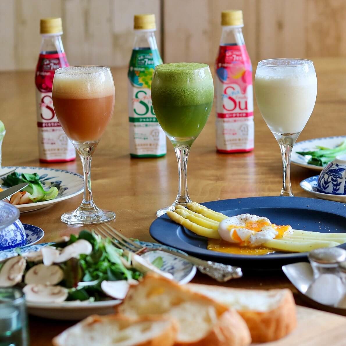 - 夫:「シャルドネ」と人参、小松菜、リンゴジュースをカクテルして野菜スムージーに。