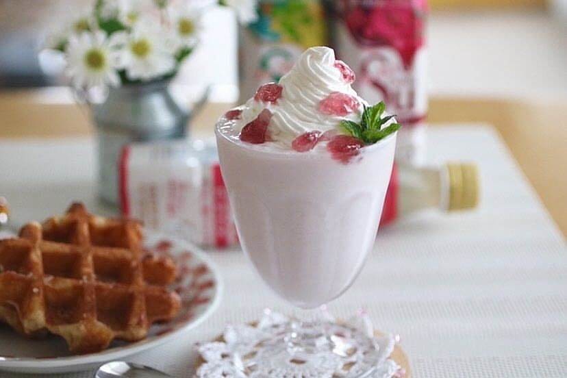 @mokomelo_さんは、甘いものが大好きな子どものために、ホイップをトッピングした「ヨーグルトシェイク風」のスムージーを作りました。甘さと酸味のバランスが取れた、豪華ドリンクが完成!
