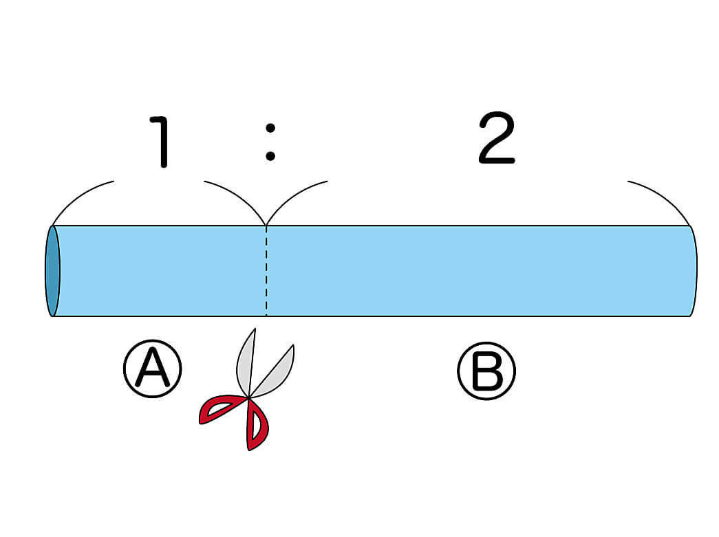 1本のストローに、長さが1:2の割合のところに切り目を入れます(AとB)。最後まで切ってしないように注意してください。