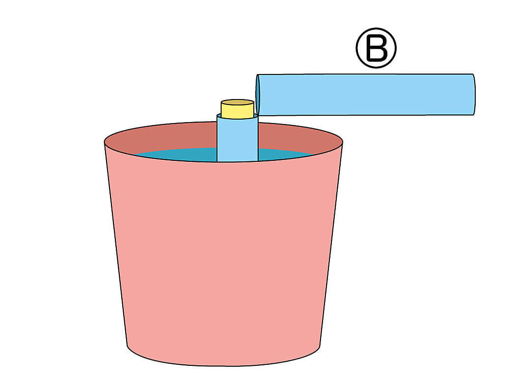 水の入ったコップにストローの短い方(A)を入れて、長い方(B)を水平に折り曲げます。