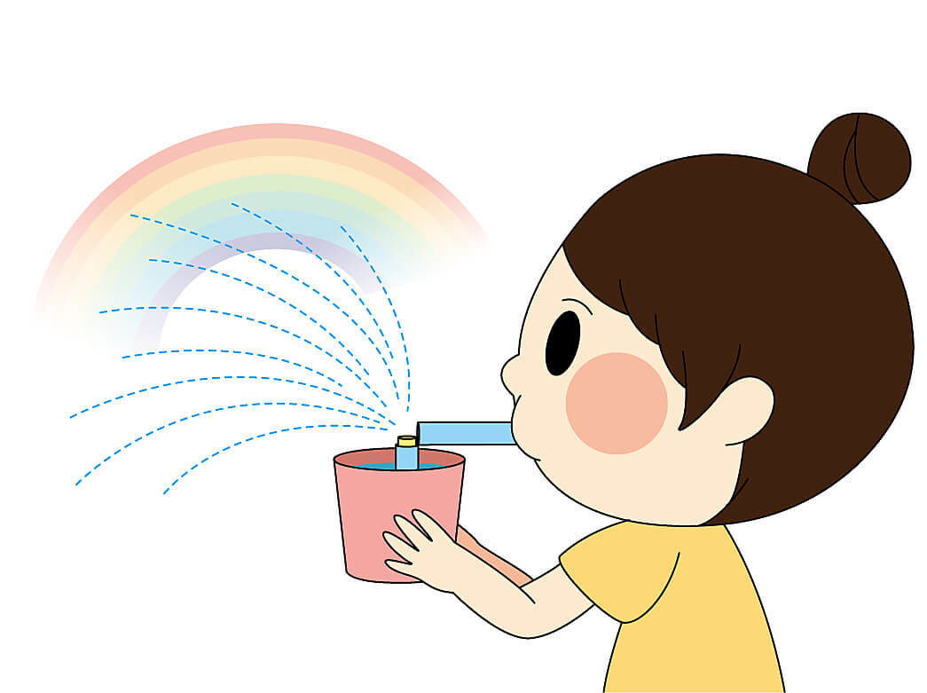 そこで、「にじいろ保育園」の保育士さんに虹が見えるストローの作りかたを教えてもらいました。 小さなお子さんには、霧吹きやホースで虹を作ってあげると喜びます。