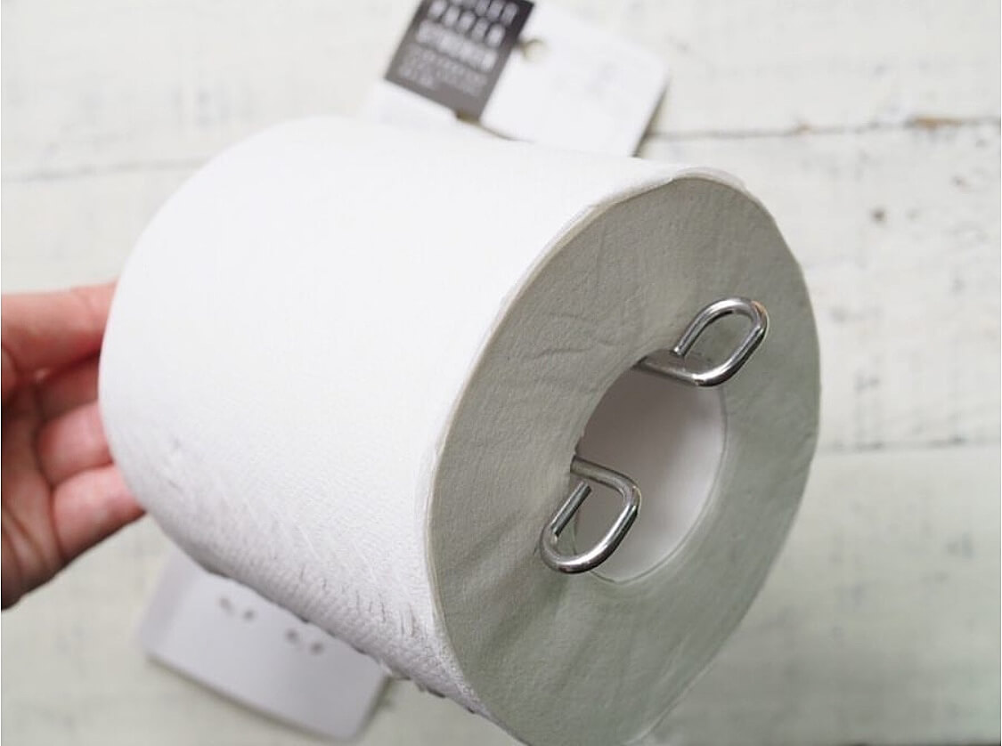 ホルダーに引っ掛けるだけで予備のペーパーが吊り下げられるので、見た目もシンプルでとてもスタイリッシュです。