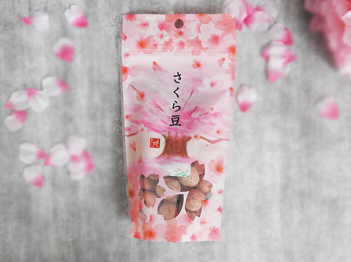 カルディ「さくら豆」は、落花生を桜の葉っぱと花で包んだスイーツ。パッケージを開けた瞬間に、桜の香りが部屋中に広がりました。