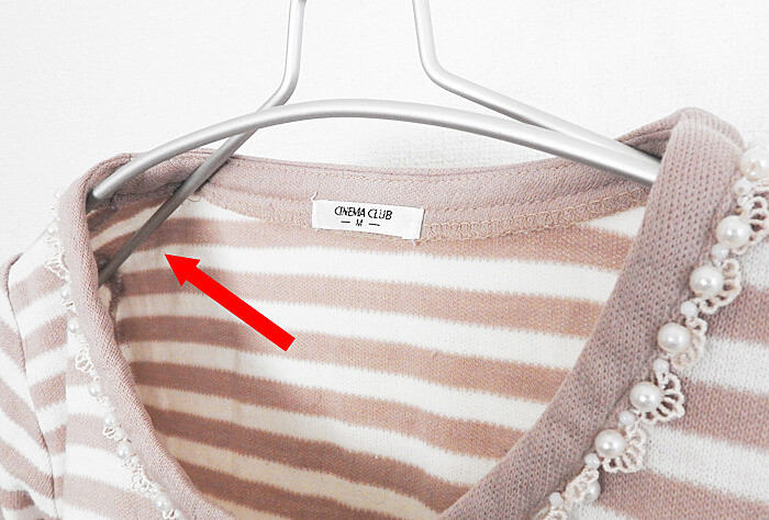 まずは、山のようにくぼんているハンガー部分にそって襟口を入れていきます。