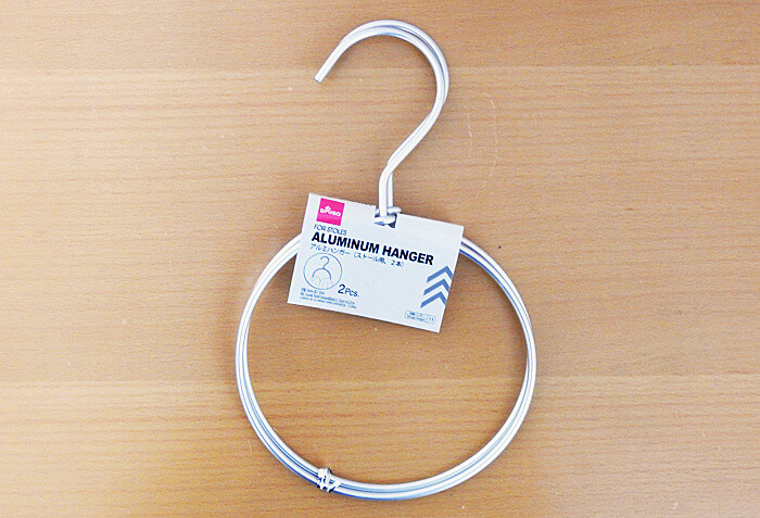 わっかの様な形が印象的なダイソー「アルミハンガーストール用(2本)」。ストールというよりもマフラー用のハンガーに良さそうな感じがしますね。