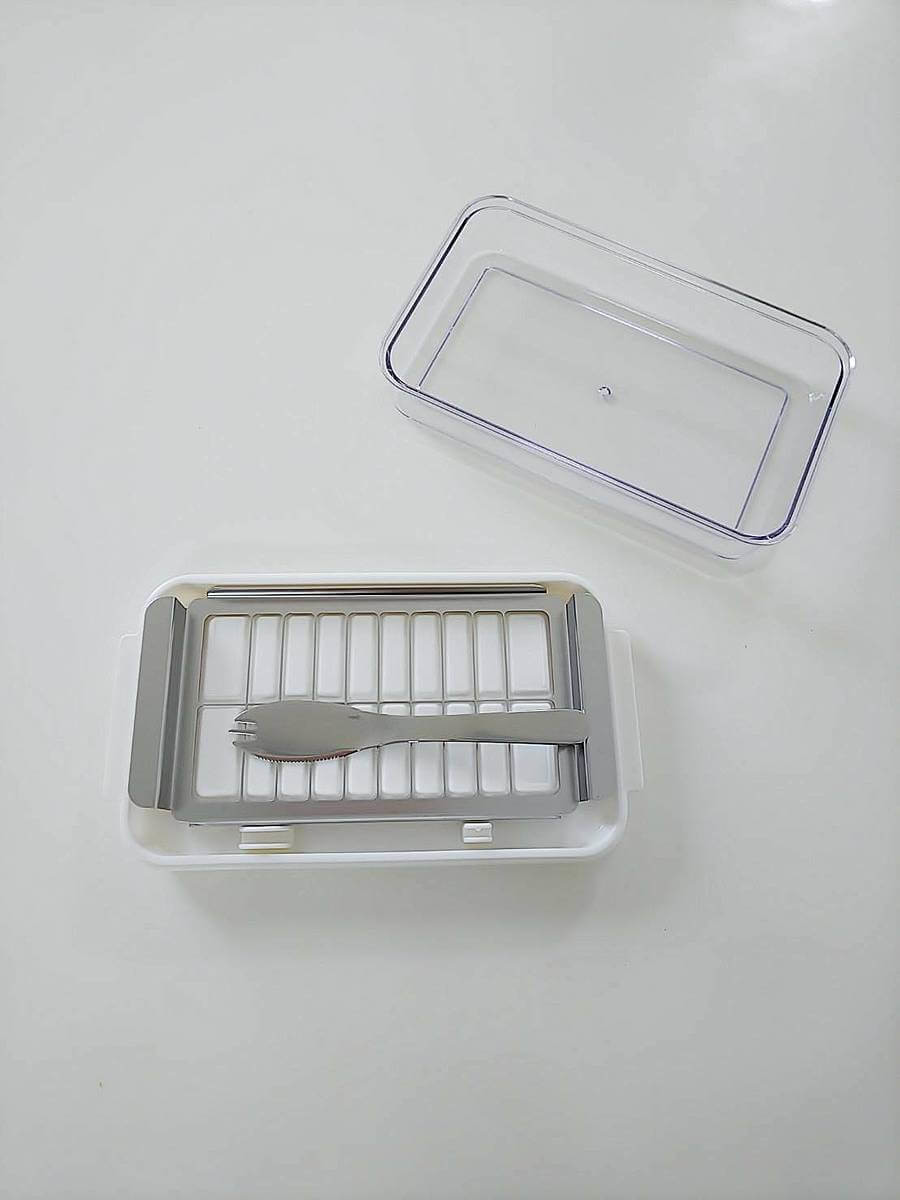 こちらはバターケースとバターカッターが1つになった物です。バターナイフも付属されているのでお得です♪