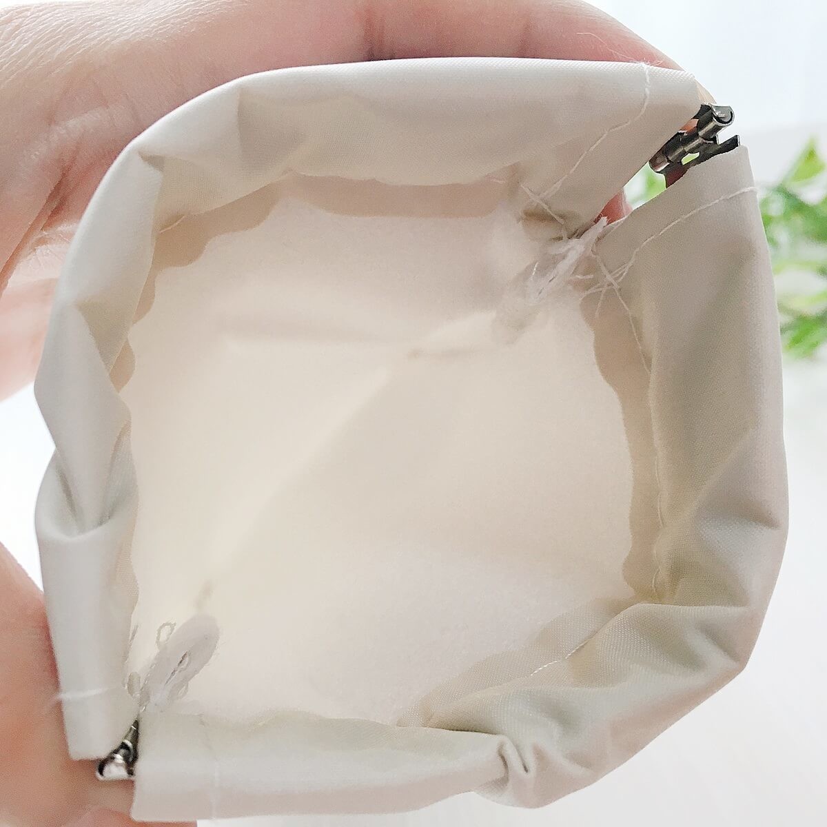 ファスナーでも巾着でもないこのばね口がとても使いやすいです。開閉が楽ちん。