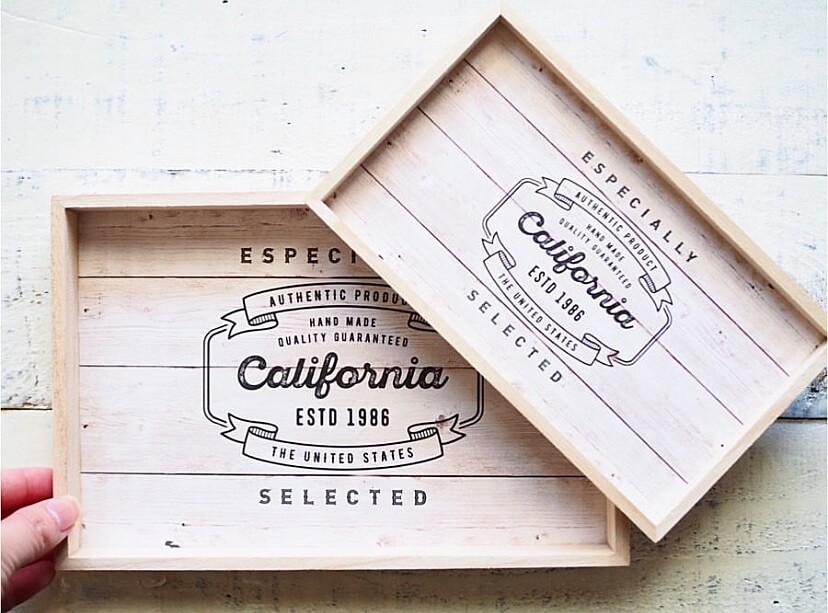 ▲「木製インテリアトレー 木目柄」各100円(税抜)
