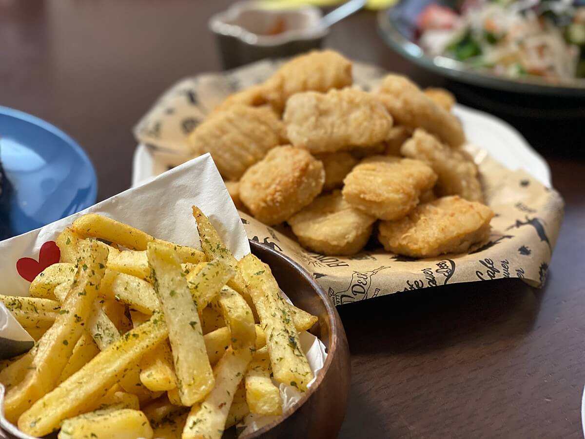 ホムパに絶対欠かせないものと言えば、フライドポテトとナゲットが「最強2大食材」です!テッパン中のテッパンですが、大人も子どもも大好きな定番メニュー。冷食だから油で揚げるだけと簡単です。