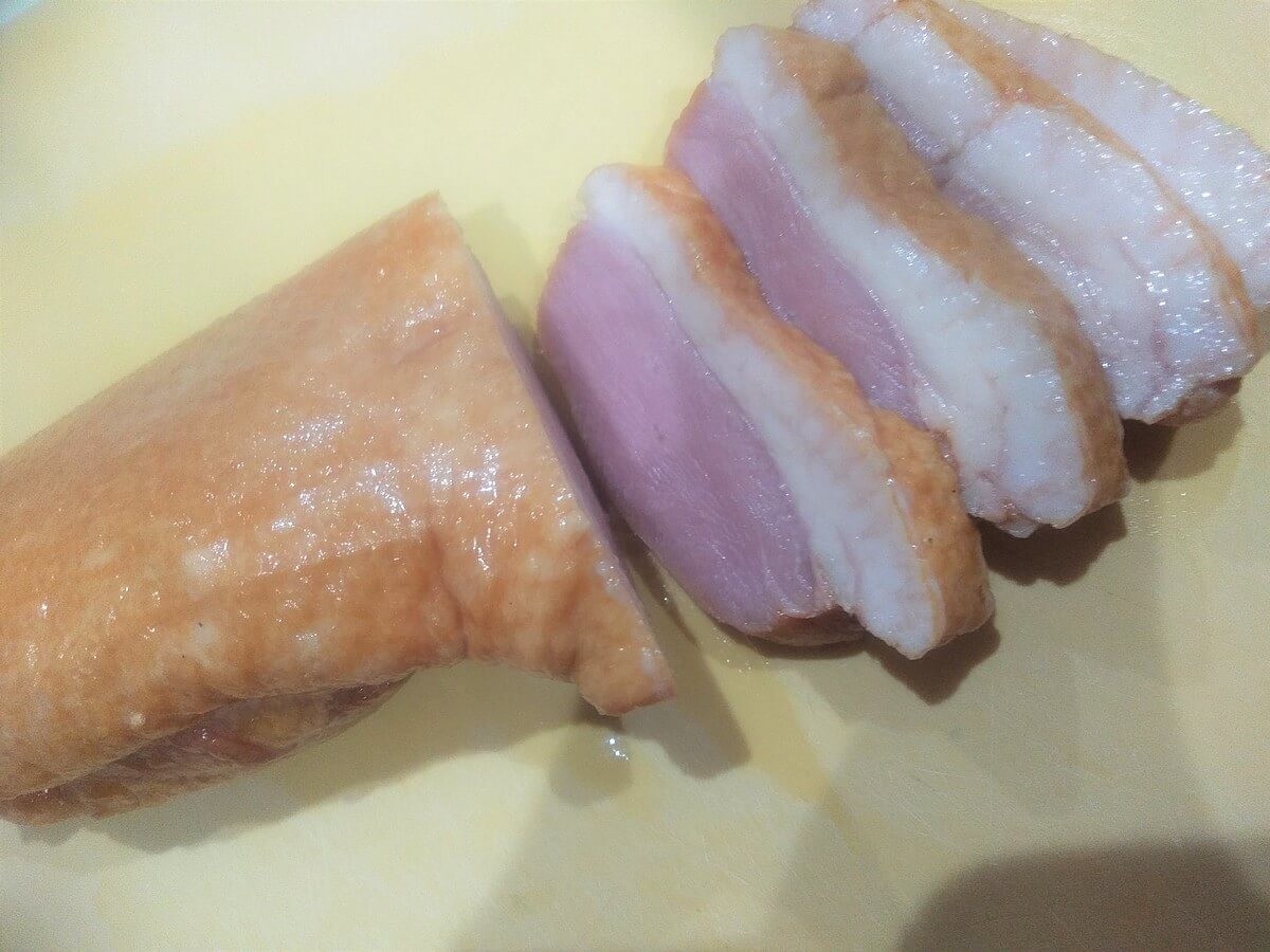 燻製された業務スーパーの「合鴨ロース」は、なんといっても調理が楽ちんなこと。 自然解凍か流水解凍してから、切るだけで一品完成しまいます。