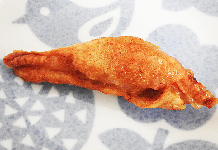 中身は鶏皮の中央部分に入っています。やや少なめな印象を受けました。中身よりも鶏皮のインパクトが強く、カリカリの唐揚げを食べている様な感覚でしたね。ごはんが進みます!