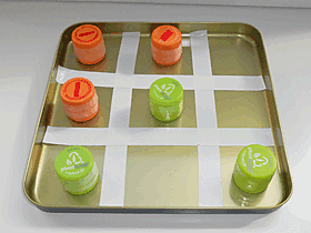 - ペットボトルのキャップ…9マスの場合は、2色を10個ずつ
