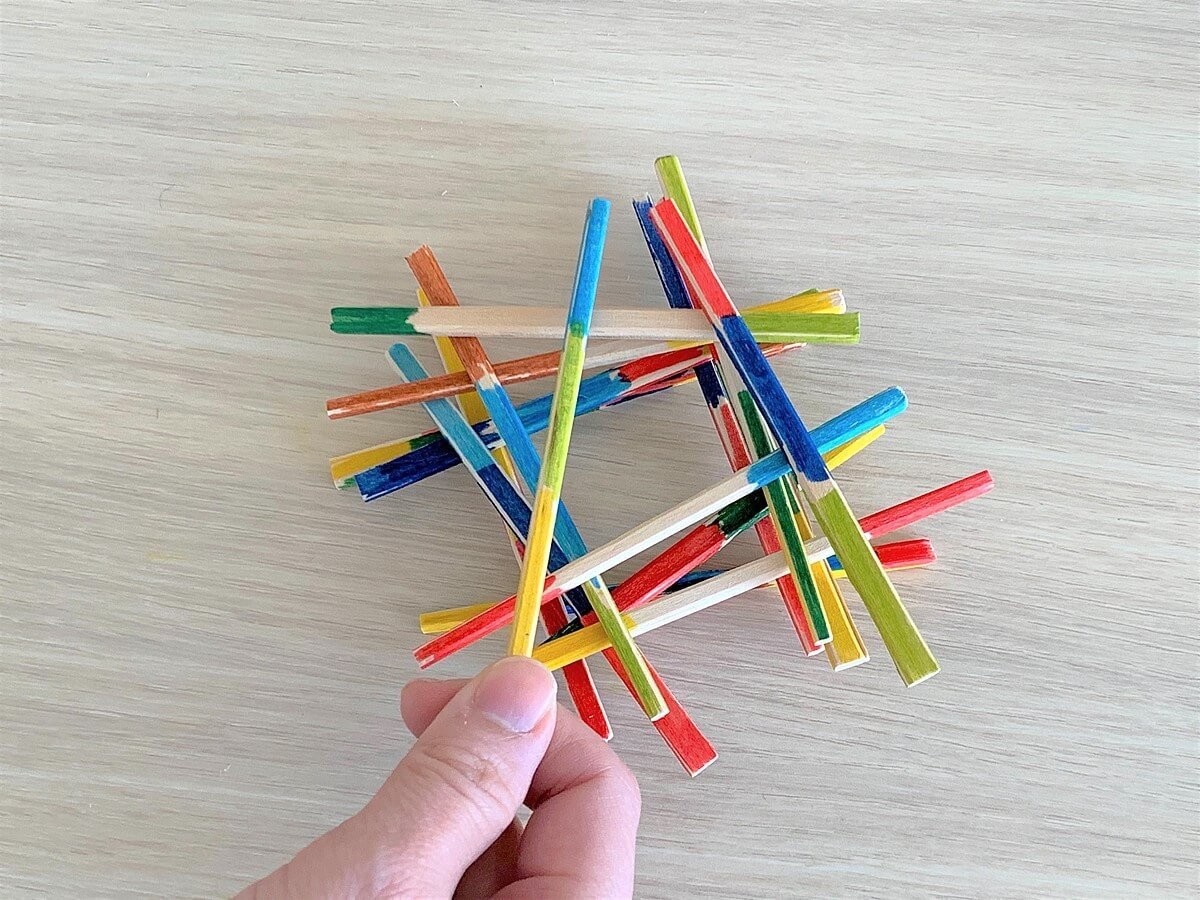 どんどん順番に重ねていき、崩した人が負けです。次の人が崩れやすいように、並べてみても。 崩れない場合は、割り箸を増やしてみましょう。 また、負けた人は、何かを披露するなど、事前に決めておくと、ゲームがさらに盛り上がります。