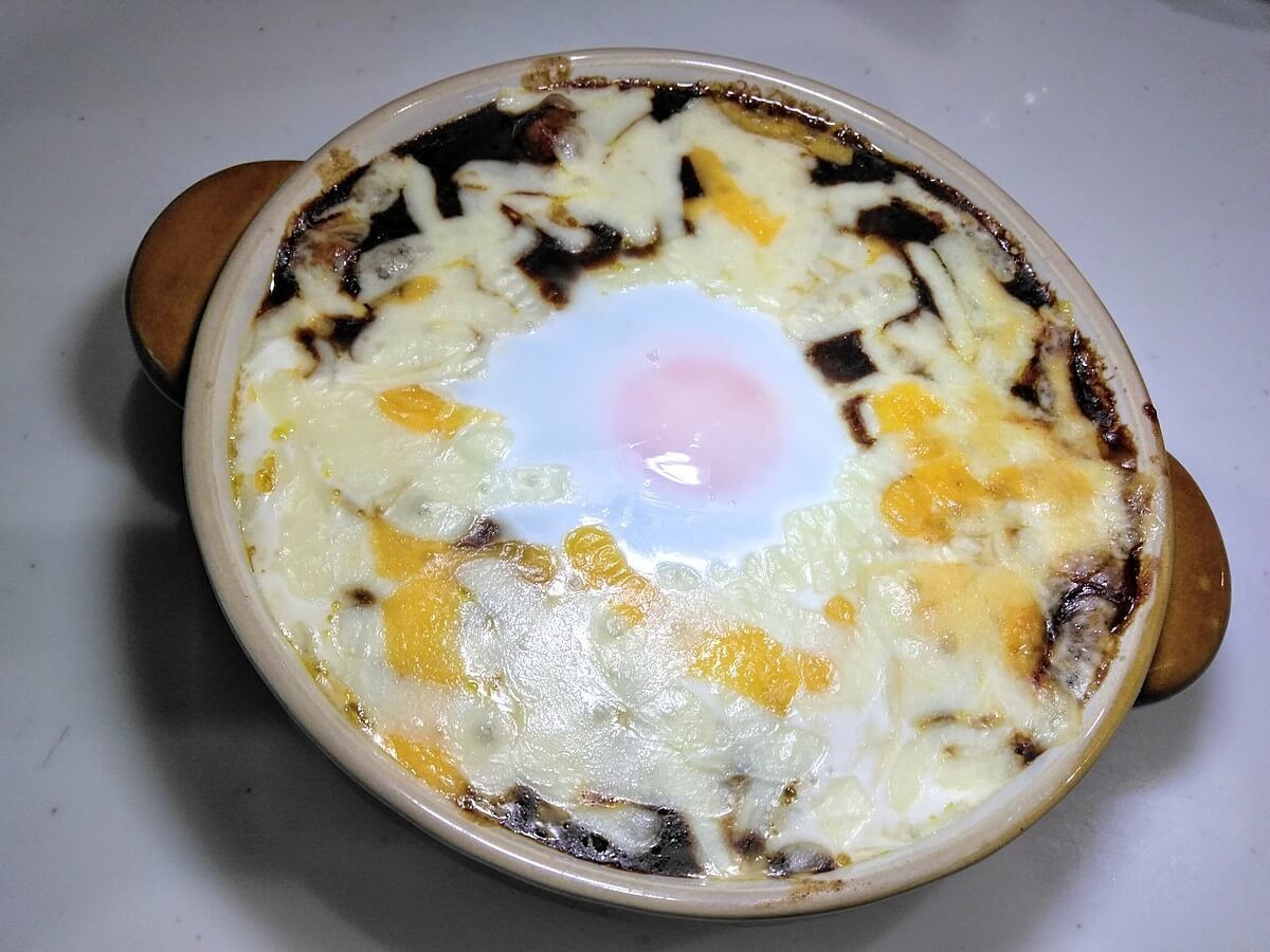 焼き時間はお好みですが、220℃で10分なら卵が半熟、15分ならしっかり固まっている状態です。